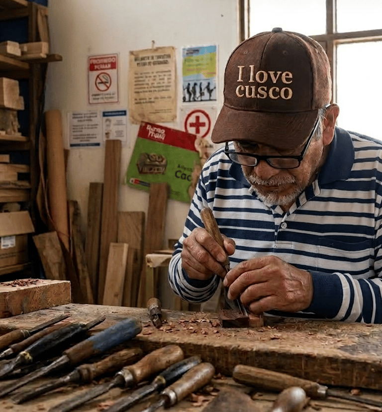 The wooden tables used in our experiences are crafted by artisan carpenters from the Sacred Valley, using natural woods and traditional woodworking techniques.